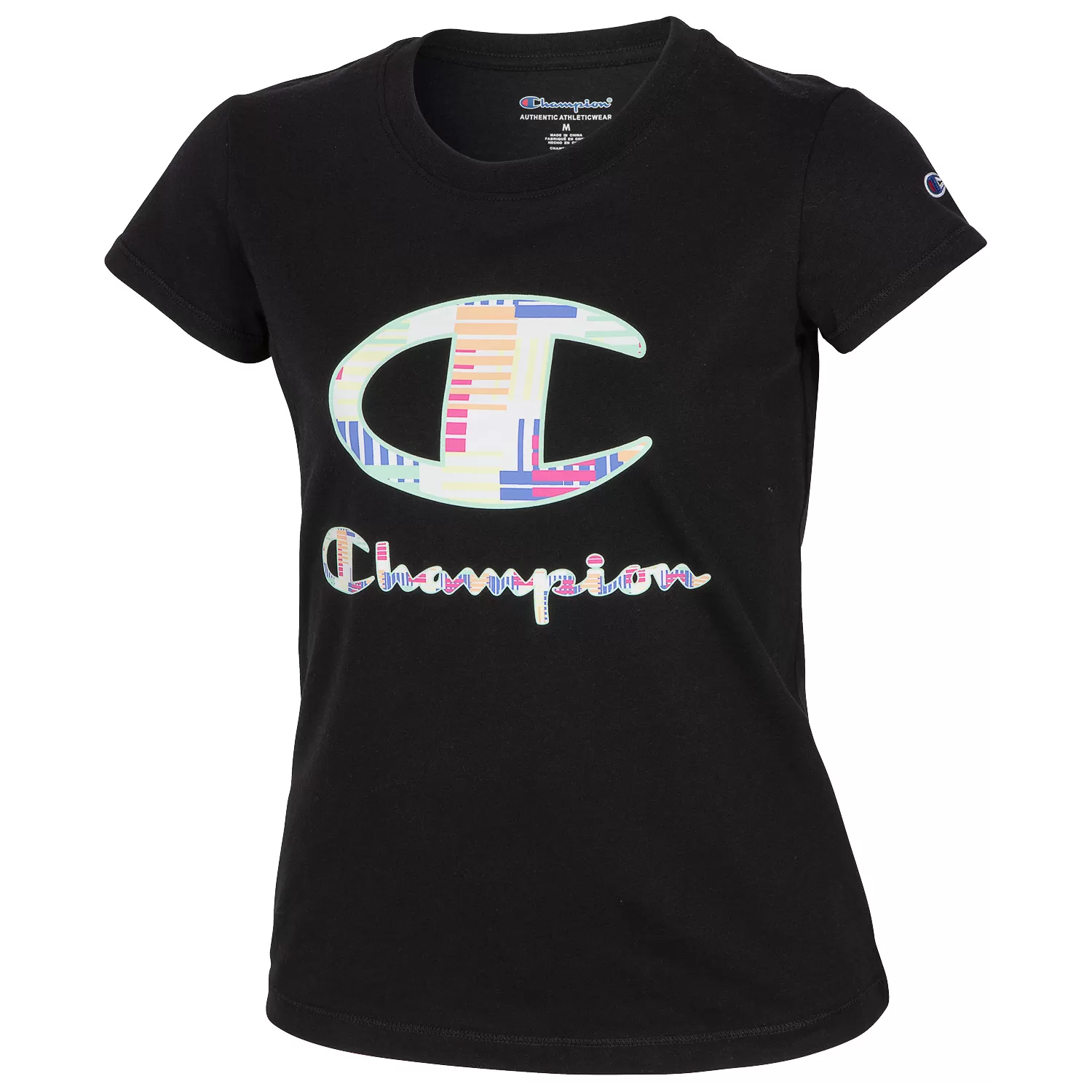 The Champion Multi Stripe Pattern Tee is the perfect style for your little fashionista. With its soft cotton-blend fabric and multicolor graphic, this tee is sure to become your little champions go to. Great for her to wear to school, out to play or even a day of lounging. Perfect when paired with Champions signature script leggings or a pair of jeans. She will look like a champion while being one in style.